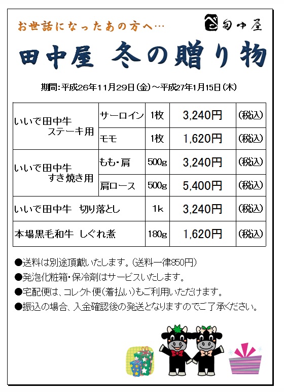 よろしければぜひ田中屋 冬の贈り物をご利用くださいませ!