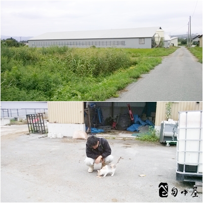 常務と牛舎に住んでいるネコのサンケ。